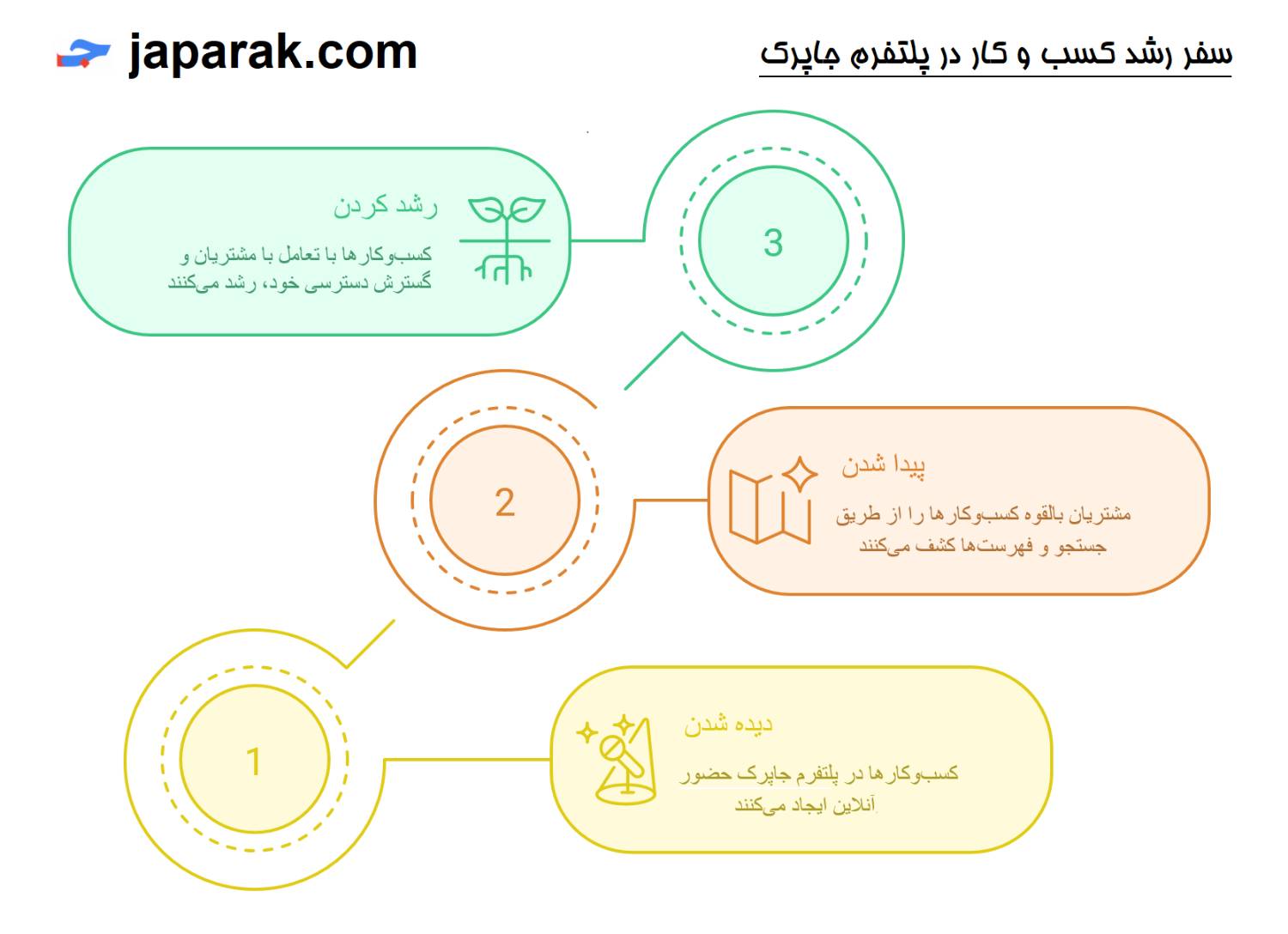 برای شروع، کافی است به وبسایت جاپرک به آدرس japarak.com مراجعه کنید. روی گزینه «ثبت کسبوکار» کلیک کنید، شماره موبایل خود را وارد کرده و کد تأیید ارسالی را ثبت کنید. سپس فرم اطلاعات کسبوکار را با دقت تکمیل کنید و همه فیلدهای اجباری را پر کنید. پس از ذخیره اطلاعات، صفحه کسبوکار شما آماده نمایش خواهد بود. اگر کسبوکار شما از قبل در جاپرک ثبت شده است، با انتخاب گزینه «من صاحب این کسبوکار هستم»، میتوانید کنترل و ویرایش صفحه را در دست بگیرید.