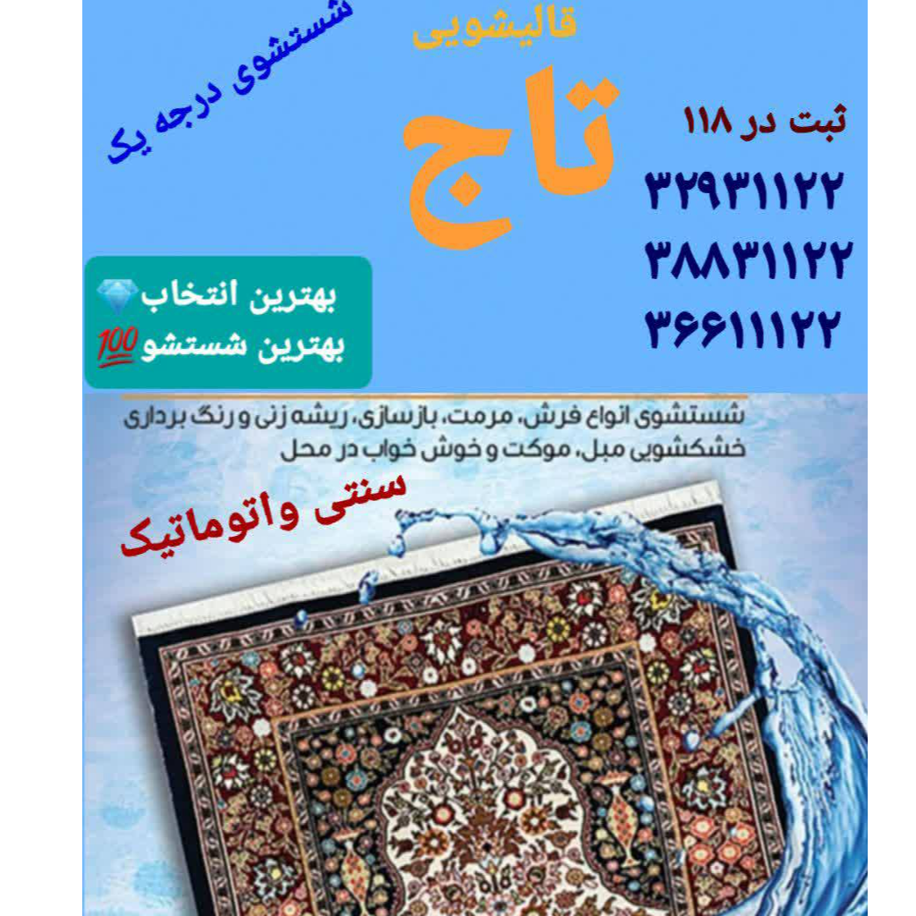 1401/12/09دوستان ممنون نظرات شما خیلی کمک کرد برای انتخاب قالیشویی تاج فرشام دستبافت بود خیلی تمیز شده معلومه اصولی شسته شده