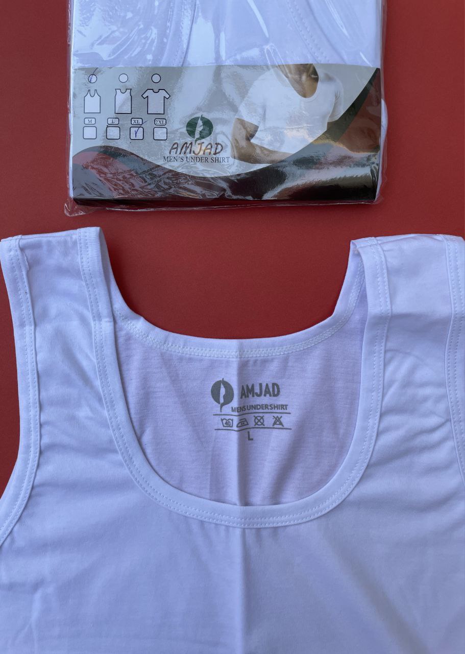 زیرپوش مردانه سوپر نخ پنبه سفید امجد مدل رکابی بسته 1 عددی